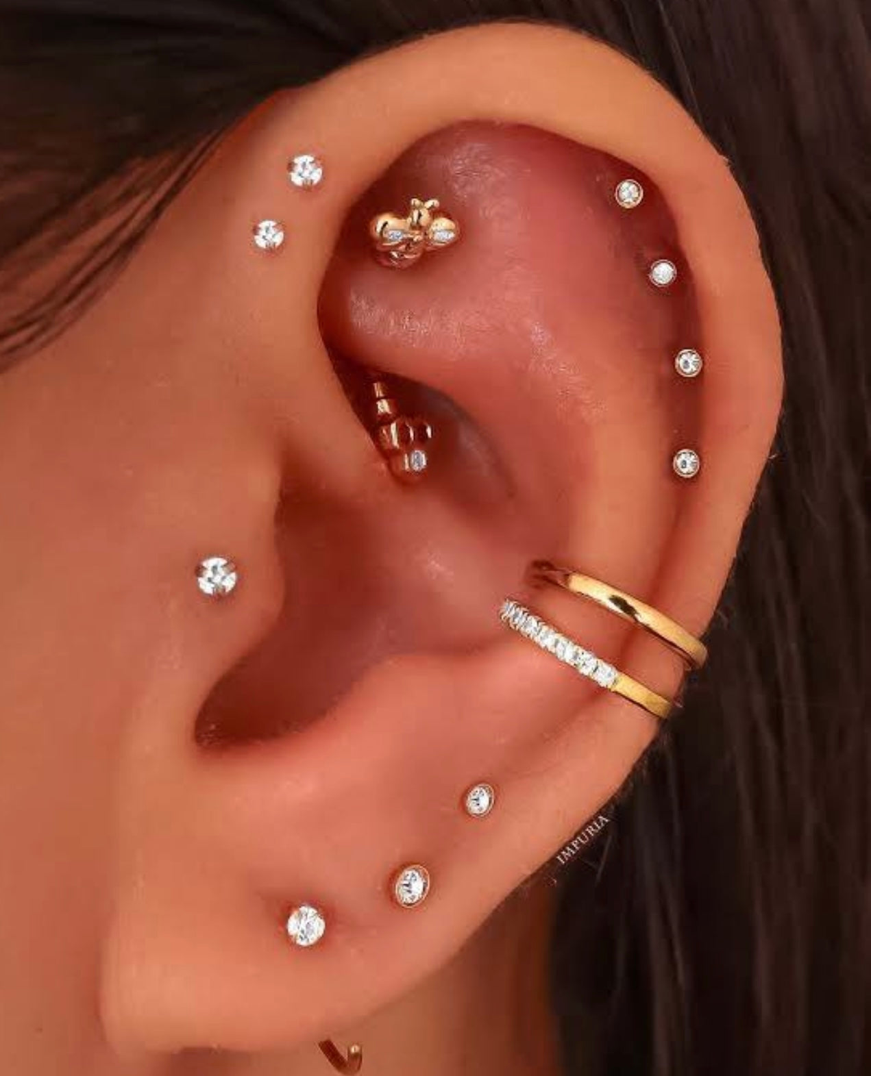 Ear piercings and customized jewelry styling is now available at our studio. We offer Lobe, Daith, Conch, Tragus, Helix, Frontal Helix, Flat Helix, Clusters, Constilation groupings, Nostril and Upper Navel piercings. Custom jewelry styling after piercings are healed is a furthered option.