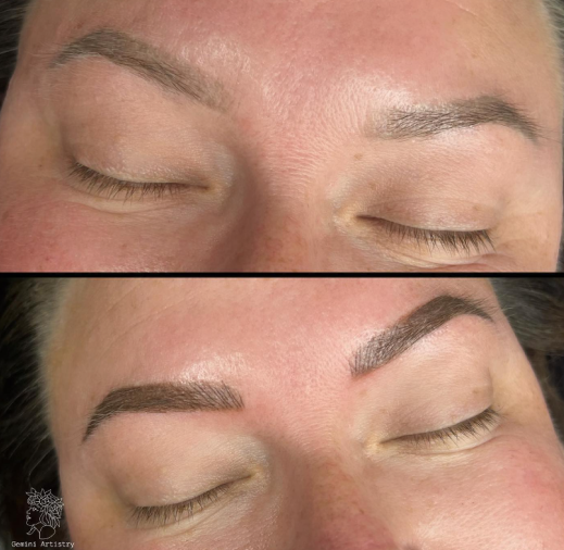 This technique creates fine hair strokes in the skin to add volume and shading is also added to create depth. The shape and stroke patterns are determined during the preliminary drawing created before the procedure begins. Pigments used for the procedure are chosen to match natural brow hair colour but can be altered if desired.